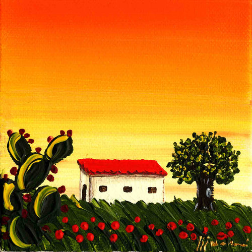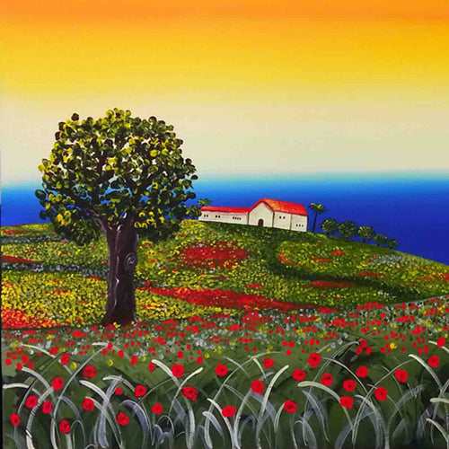 Suggestivi paesaggi siciliani dai toni caldi e vivaci che si fondono in mille sfumature differenti, oltre il mare, al di là di ogni immaginazione. Autrice Amanda Marini
