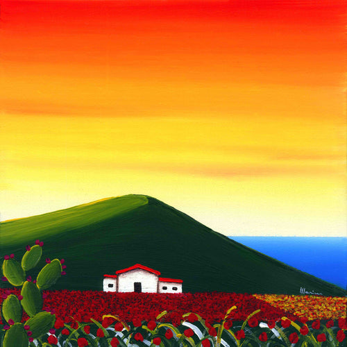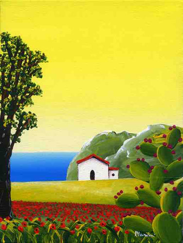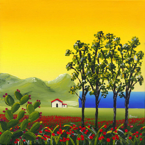 Suggestivi paesaggi siciliani dai toni caldi e vivaci che si fondono in mille sfumature differenti, oltre il mare, al di là di ogni immaginazione. Autrice Amanda Marini