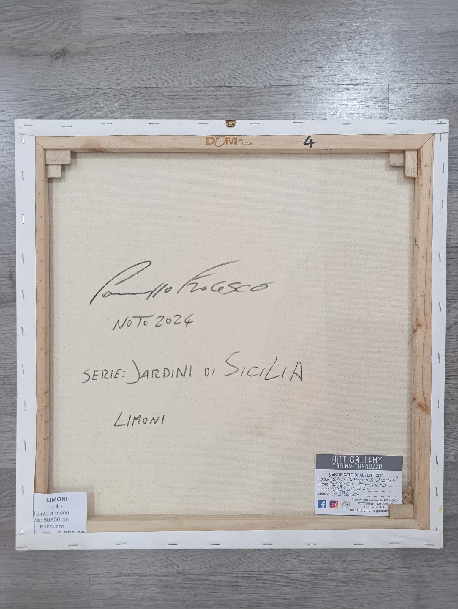 L'opera fa parte della serie "Jardini di Sicilia" dove le suggestioni forti dei paesaggi naturali,ricchi di profumi e colori,inebriano lo spirito.